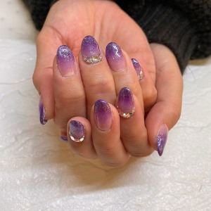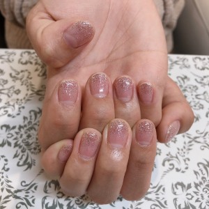 先日のお客様です。 ラメグラデーションはジェルネイル初めての方などにも 人気です。 まずは、ラメグラデーションか・・・