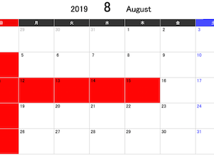 こんにちは umbrellaです。 2019年8月からの定休日のご案内です。 赤く塗られているところが定休日となります。 その・・・